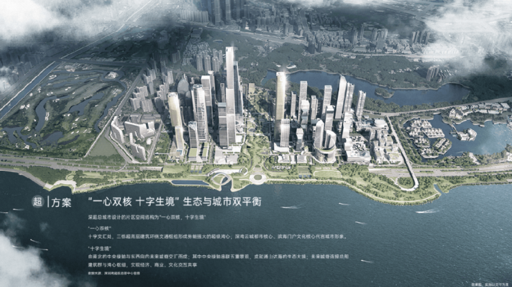 “一心双核 十字生境”空间规划,成就深超总链接未来、创新交互的巅峰图景。