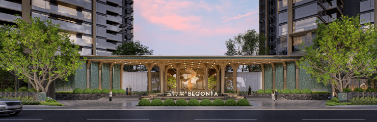 璀璨作品:绿城·玉海棠,将曾经遍布番禺市桥的骑楼灵感,融入建筑设计之中,【瑰玉】、【璞玉】双子塔,采取绿城公建化立面,以温润、轻盈的地标美学,与区府正芯的城市形象建筑群交相辉映;