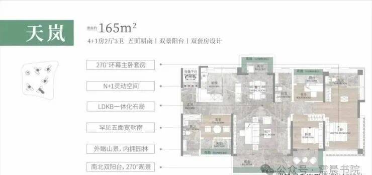 建面约165㎡大户型,三大极致打造相当震撼,朝南面宽达到约17.4米、近9米L型景观阳台、大方厅设计,景观阳台。