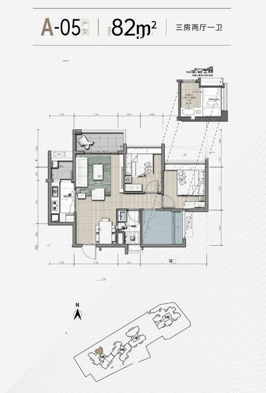 85㎡三房两厅一卫与 82㎡户型布局相似,总价约 423.3 万元 / 套,剩余房源主要在高楼层,采光条件更佳。
