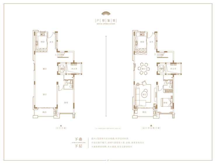 下叠建面相对小一点,约206㎡,空间感不错,配置了两层的地下拓展空间。