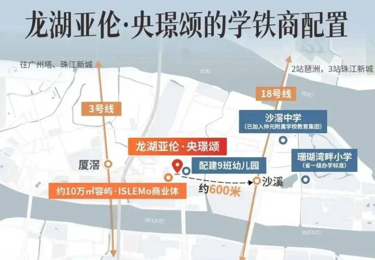 这个项目离沙溪地铁站大概600到700米,坐18号线1站到万博,2站到琶洲,3站就到珠江新城了。