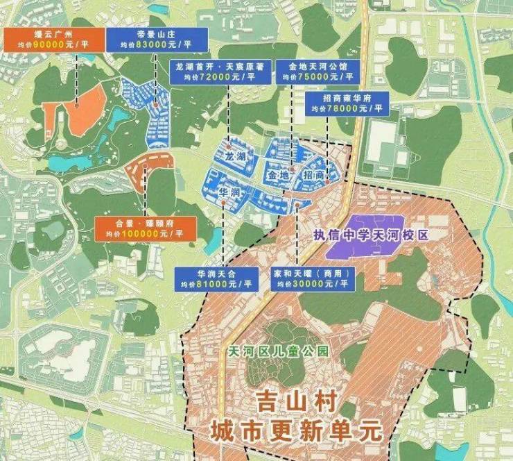 不等家门口待建的学校,周边现有五大省级名校——清华附中、执信中学、天河外国语学校、广州中学、广州岭南中学(暂定名)。