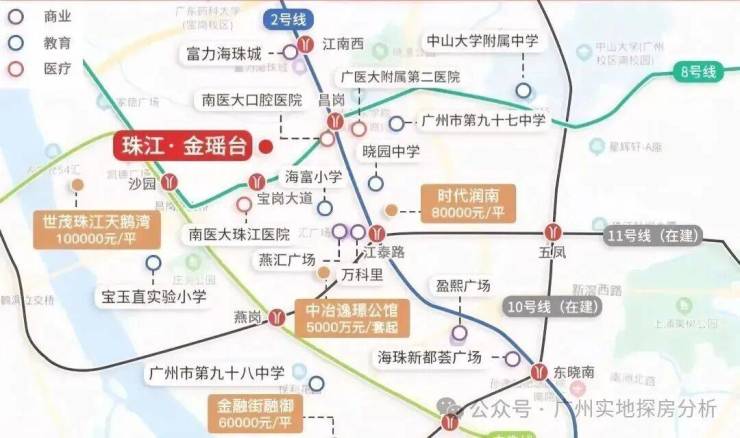 项目周边有富力海珠城、江南新地、江南西名店城、万国奥特莱斯、广百广场、乐峰广场和海珠新天地等商业体。几百米外还有以平价著称的沙园市场。