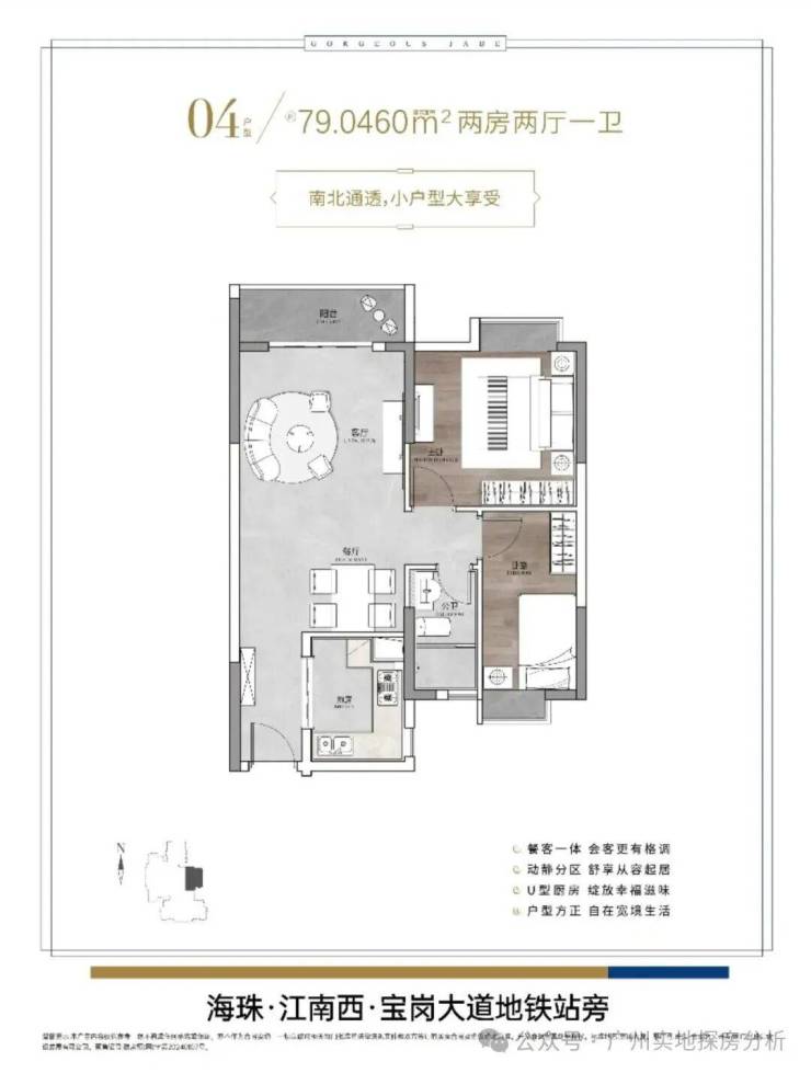 项目距离地铁8号线宝岗大道站约420米,距离地铁2号线昌岗站约830米,算是一个双地铁楼盘,乘坐地铁7站可达珠江新城,8站琶洲。自驾的话可以沿着工业大道往内环或者广州大道方向去往天河越秀都很方便。