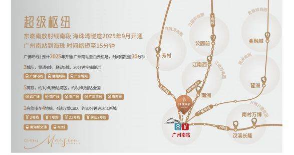 项目坐拥堪称“全广州最强”的轨道交通网络——距离地铁2号线、7号线、22号线及佛山2号线交汇的广州南站仅约300米,步行5分钟内可达。依托这一超级枢纽,4站直达万博CBD,7站抵达北滘新城,30分钟覆盖珠江新城;更关键的是,22号线未来将北延至白云机场、南延至深圳沙井,真正实现广深“半小时生活圈”。此外,项目周边还布局2条有轨电车、5条高铁、3条城际轨道及4条城市快速干道,16分钟直达海珠,48分钟直抵香港九龙。如此密集高效的交通体系,让业主无论商务出差、跨城通勤还是日常出行,都能“多睡十分钟”,从容开启每一天。