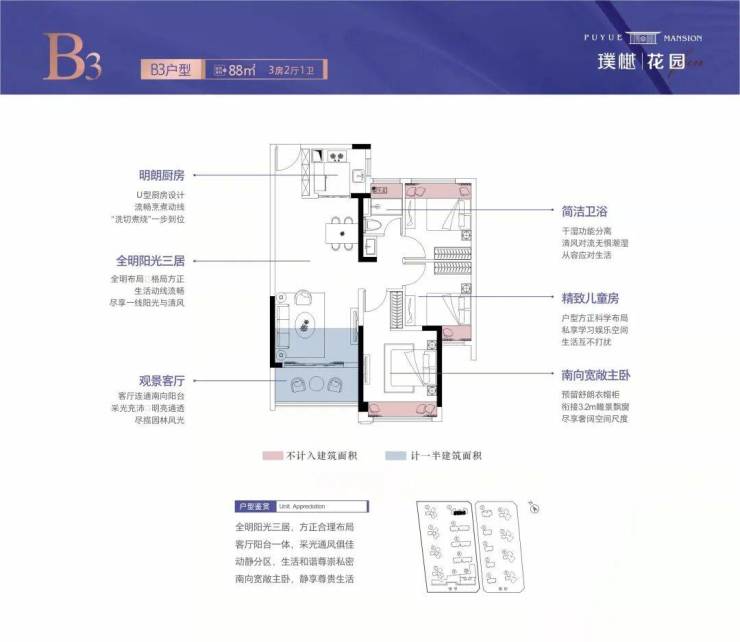 2. 板式全明阳光三居,南向舒阔阳台,风光四季尽览