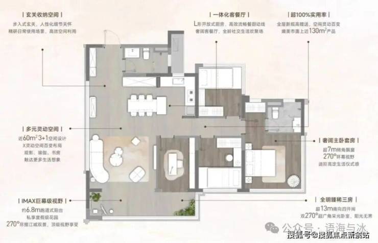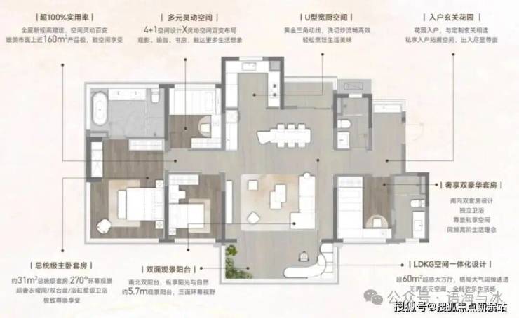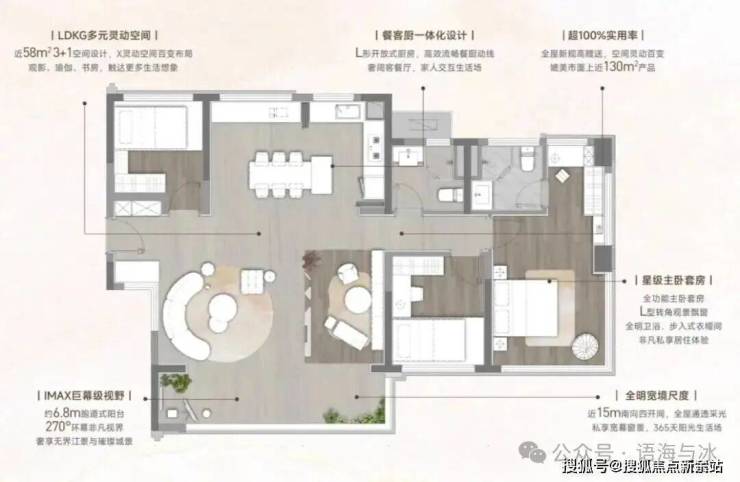 建面139㎡四房两厅两卫,超60㎡超感大方厅,约31㎡总统级套房,270°环幕观景。