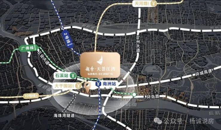 轨道交通:项目650米范围内集聚地铁10号线(在建)大干围站、2号线南洲站、广佛线石溪站,形成15分钟抵达珠江新城、30分钟通达广州南站的轨道交通圈