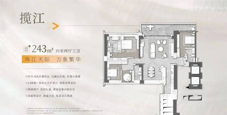 2023全年白鹅潭悦府累计成交金额超60亿,荔湾区千万级产品成交量TOP1;并被克而瑞评选为“2023年全国十大高端作品”;2024年更是荣获2024法国设计大奖金奖、2023美国IDA国际设计大奖。