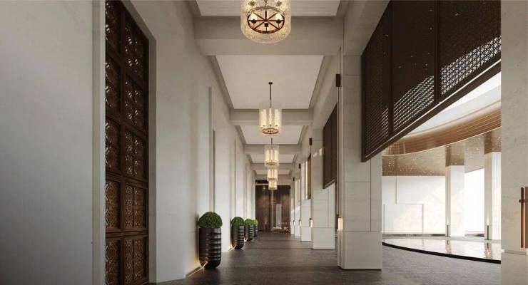 真正的奢华,始于归心的旅程。粤海·云上精心设计了充满序列感与尊崇感的归家动线:从酒店式环岛落客区开始,经光影艺术水景廊道、半户外休憩平台,最终抵达层高约10米、融合岭南趟栊门、花窗等文化元素的艺术大堂。这不仅仅是一条通路,更是一场过滤都市喧嚣、实现心境转换的精神仪式。