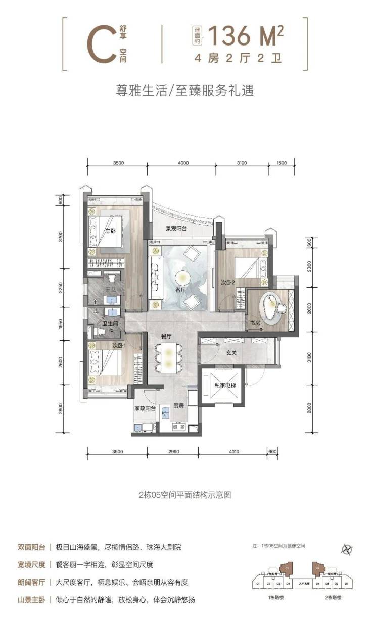 ·产 品:建筑面积约111-140㎡三至四房、270度环幕山海景观