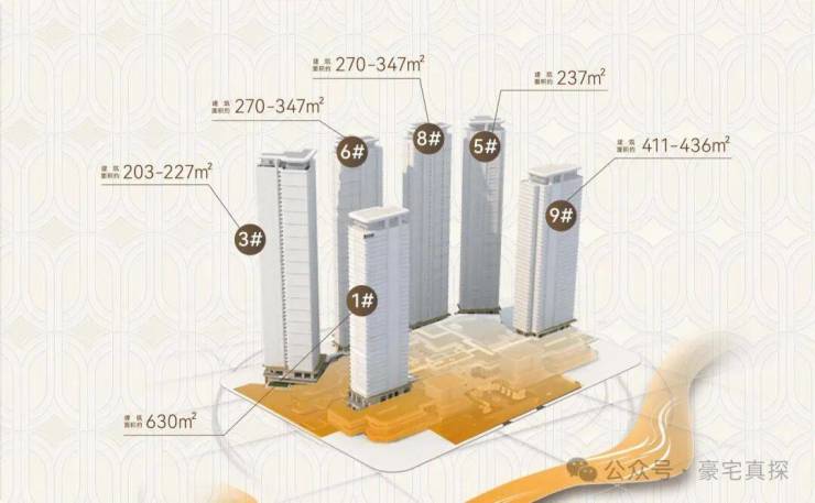 鹏瑞金融城项目的业态阵容对标全球地标,打造国际顶级城市综合体,除了上面提到的深湾会,还涵盖了顶级公寓、奢华酒店、高端定制商业、文化艺术中心、超甲级写字楼等业态。这个业态阵容,与深圳湾1号如出一辙。而且从⽬前照⽚看,项目各业态的外观也是很牛,气势宏伟,高低错落。广州鹏瑞1号的T1楼王入市。目前靠近珠江-南区:3栋顶级公寓T1、T2、T3,与艺术中心T4组成北区:T5、T6(部分为顶奢酒店)其中:深湾会会所(T1-2-3的园林层组成)南区:320-2000平,主力户型450、550平,广州唯一300平起顶豪项目,圈层纯粹。