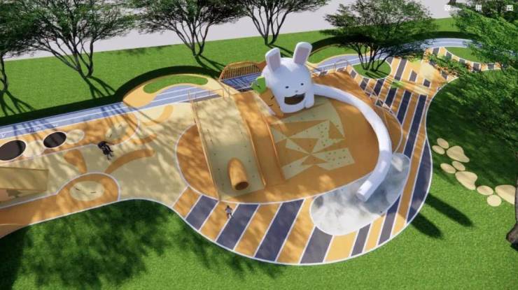 以“一轴两心”的规划理念,打造立体式园林,花木错落有致,配合童趣乐园、康体跑道等营造社区丰富自然生活空间。