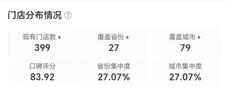 事实上,近年来乐乐茶的门店拓张并不理想,窄门餐眼数据显示,乐乐茶近一年关店数为132家。截至目前,乐乐茶在营门店数为399家,覆盖27省份、79个城市。