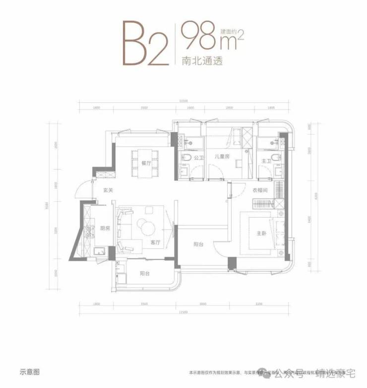 南北通透建面约98㎡户型