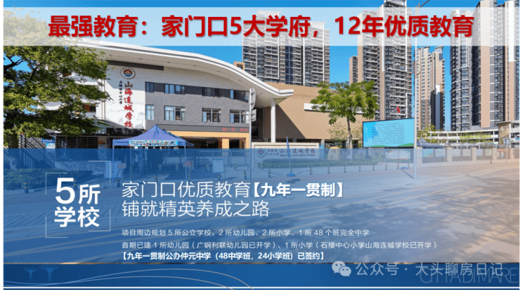 社区配套5所学校,2所小学(1所已开学)、2所幼儿园(1所已开学)、1所九年一贯制公办仲元中学(凯德独资建设·保障山海连城业主(户籍)子女就读),12年教育助力孩子成长。