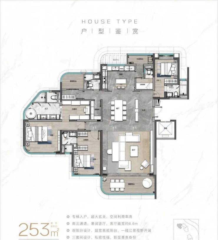 特点:一线江景,南向大面宽,改善与豪宅兼具。
