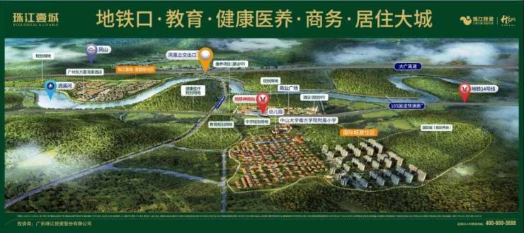 集文、旅、康、养、商、教、居于体,打造商务城、健康医疗城、教育城和居住城,强大的功能组团全广州都少有。