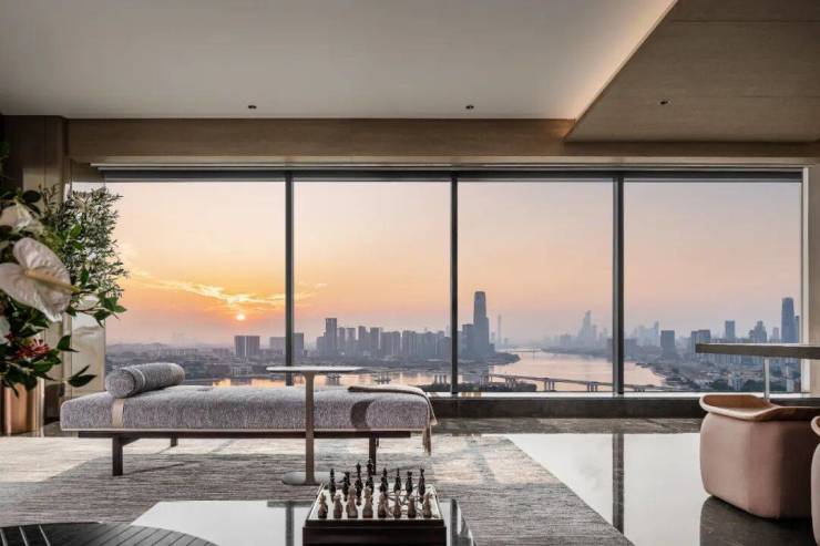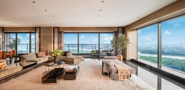 建面约206-380㎡天幕大平层,以奢阔格局实现270°环幕瞰江视野,江景会客厅堪称“塔尖人物的第二会客厅”。