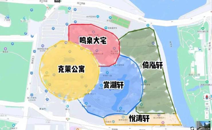 五期克莱国际公寓:建于2007年,最高最新,靠近小蛮腰,景观最好,最受年轻人喜欢。由6栋35层的高层住宅组成,其中A~D栋3梯6户;E~F栋3梯8户;顶层三梯四户,均为三层复式,且带私家泳池。