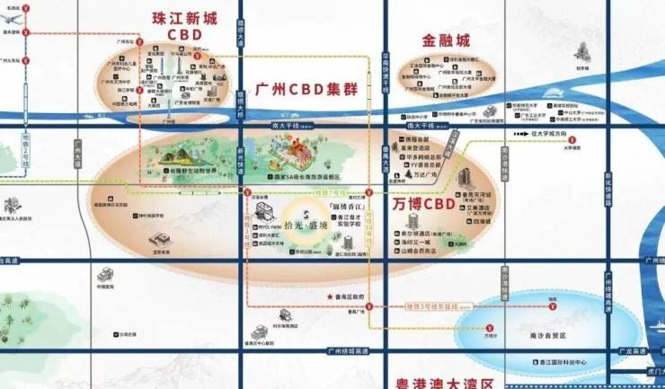 【CBD集群】中轴南拓,万博与珠江新城、琶洲、金融城四足鼎立
