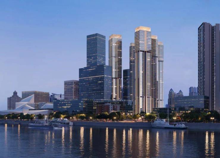 首开建面约165㎡三江美学样板,近19米四开间观江面缔造罕见江景视角。