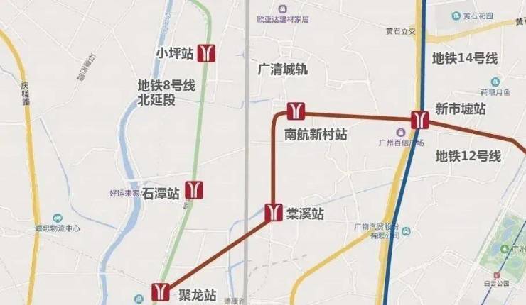 现时周边地铁修建密锣紧鼓,12号线以及14号线2期已经动工,其中双线交汇处南航新村站、新市墟站、棠溪站围绕3站鼎立于TOD新城所处的棠涌片区,白云大城腾飞如虎添翼。