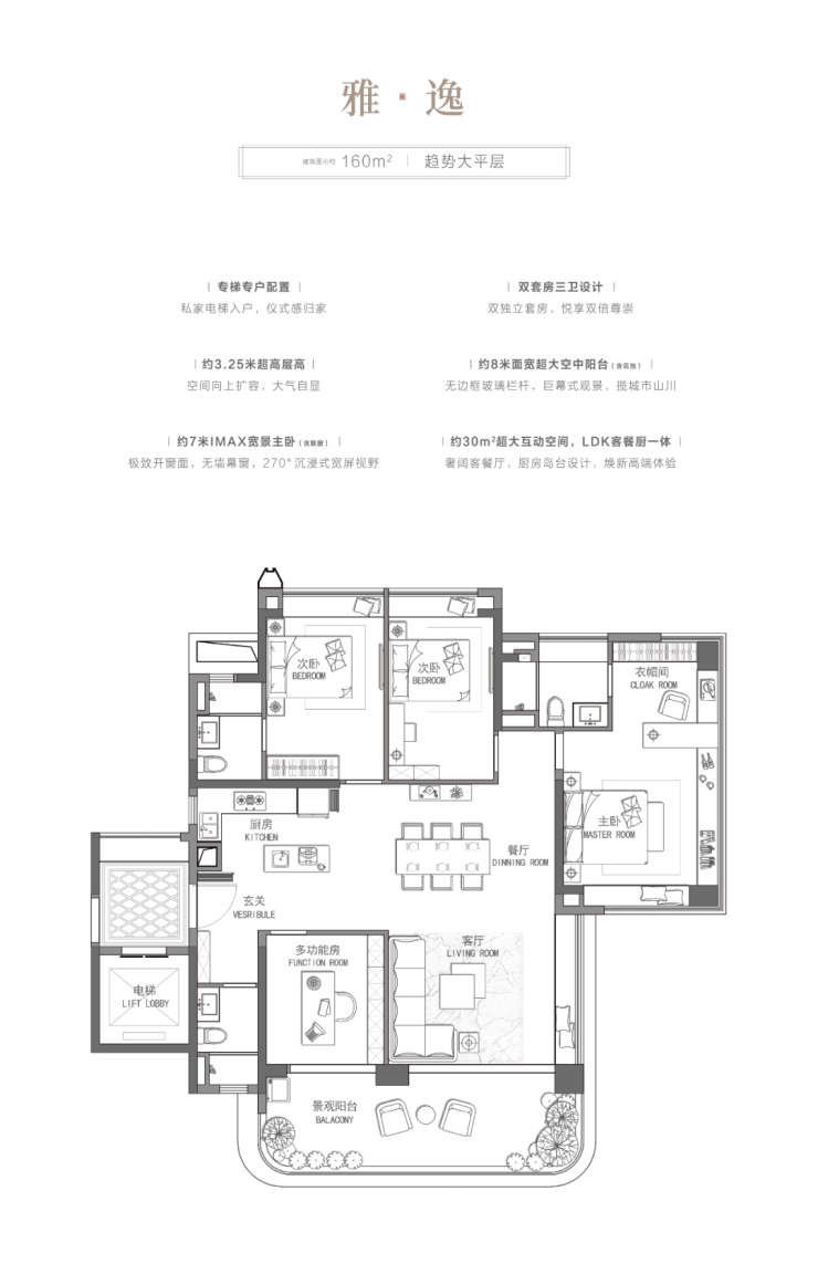 建面约160-280㎡趋势大平层四至五房