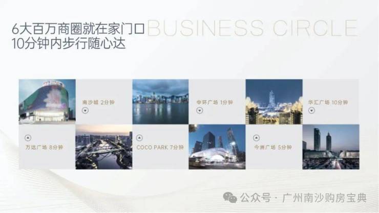 南沙万达、cocopark、南沙城、今洲新天地、中环广场、华汇广场等繁华商圈环绕,尽享都会生活。
