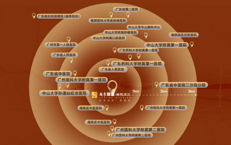 享受广医一院二院,孙逸仙纪念医院、广州市十字会医院等号称“五分钟生命线”的老城医疗保障。同时3km范围可速达海珠、越秀多个重点医疗配套。