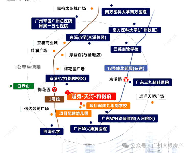 项目距离地铁3号线梅花园站直线距离仅400米左右,步行约800米,附近还有在建设的18号线北延段京溪路站,且小区还配建了幼儿园以及九年制学校,户型也设计的不错,综合各点,项目对改善买家非常友好。