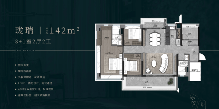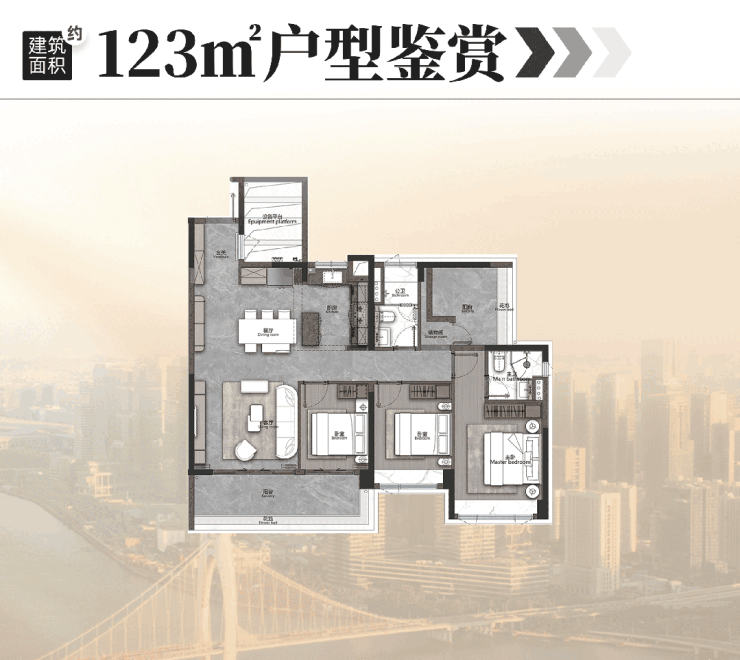建面约142㎡,南北对流双阳台 北眺广州塔/琶洲城市天际线,约8.3米双面宽长阳台 南望湿地