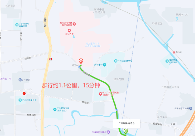 其中,南方医科大学中西医结合医院距离楼盘约 1 公里,广东省第二人民医院 (琶洲院区)、中国人民解放军陆军第七十四集团军医院距离楼盘约 1.6 公里,可为居民的健康提供保障