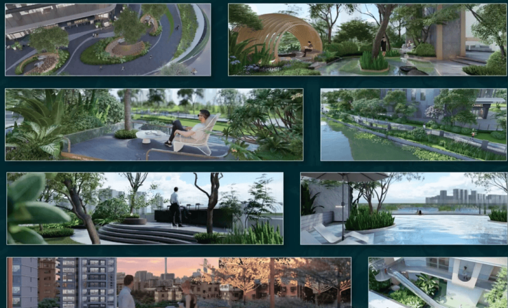 项目三层抬高设计让城市景与自然景巧妙融合,于此“半城繁华、半城诗意”转身即享