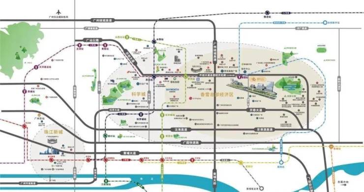 地铁——地铁6号线香雪站上盖,连通地铁7号线、21号线,速达珠江新城;有轨电车1号线、2号线、3号线香雪站始末站距离项目100米;