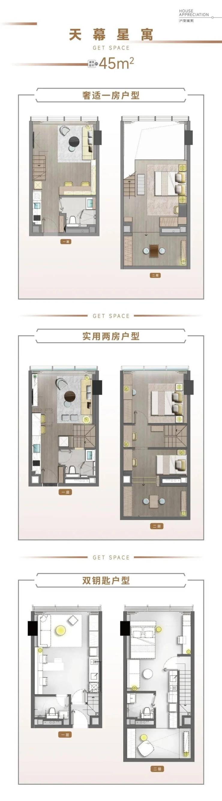 【产品面积】:天幕星寓45-60㎡,百变复式150-223㎡