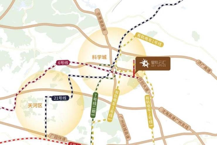 位于广州市黄埔区开创大道与荔红二路交叉处,广州地铁6号线香雪站上盖;雄踞黄埔科学城芯,广深科技创新走廊动脉节点,科学城未来将建设为工业总产值“万亿”强区,打造亟具国际影响力的中国智造中心,潜力巨大。