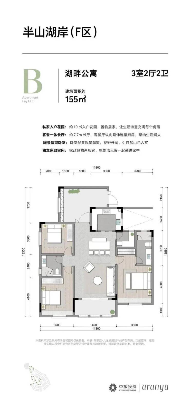 ✮产品面积:118方(2+1房2厅2卫)155方(3房2厅2卫)