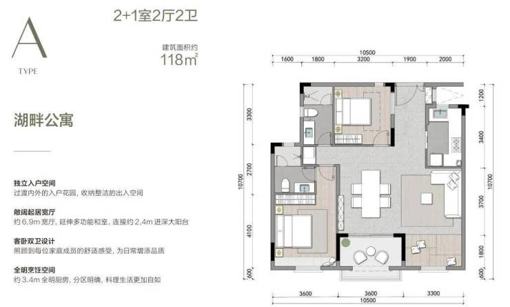 A户型118方(2+1房2厅2卫)