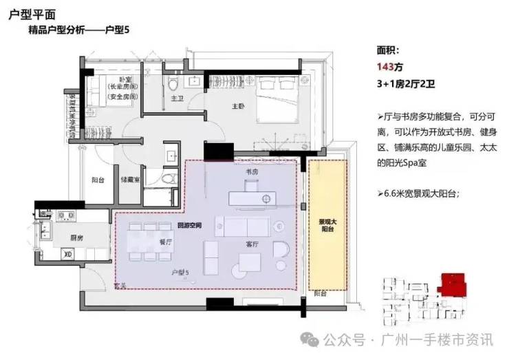 整个保利阅江台项目分为低区和高区,低区5-18层是两梯五户的设计,户型涵盖121-143㎡三至四房;高区20-30层则是两梯两户的设计,户型为210㎡左右的大平层产品,整个项目住宅总共仅92户稀缺单位,产品户型主要面向市中心改善型客户群体。