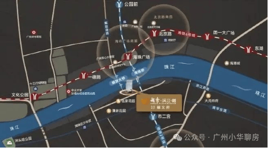 区位也非常显赫,位于海珠城央的滨江西路,且地处广州第一中轴,距离广州市政府的直线距离仅约1.9公里。
