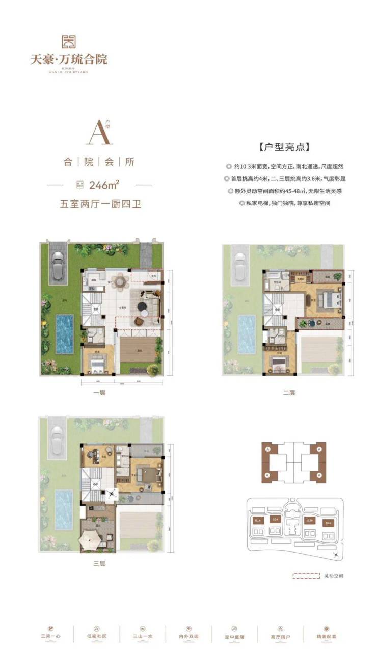 产品户型:建面约230-246㎡花园式合院,建面约276㎡空中平墅