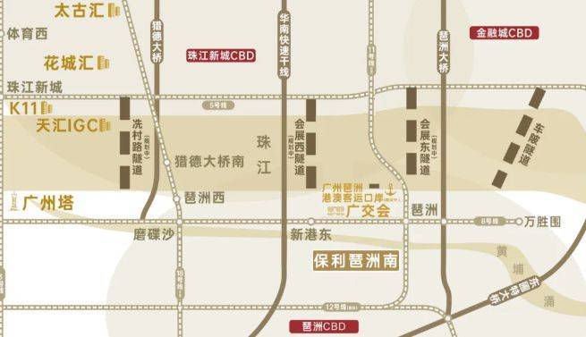 交通出行便捷高效,畅享城市繁华。保利琶洲南项目位于琶洲南 TOD 东侧,地理位置得天独厚。项目距离广州地铁 8 号线和 11 号线的琶洲站仅 900 米,步行轻松可达,双地铁线路畅达城市各处,满足日常通勤、商务出行和休闲娱乐的多样化需求。保利通过 “自建 + 联动” 的布局模式,建成多条市政道路与专属桥梁,构建起 “社区内部步道 - 市政道路 - 琶洲核心商圈” 的三级交通网络,进一步提升了交通的便利性与通达性。无论是前往珠江新城的商务中心,还是去往城市其他热门商圈、文化景点,都能快速抵达,让居民在城市中自由穿梭,从容应对各种出行需求。