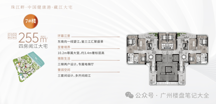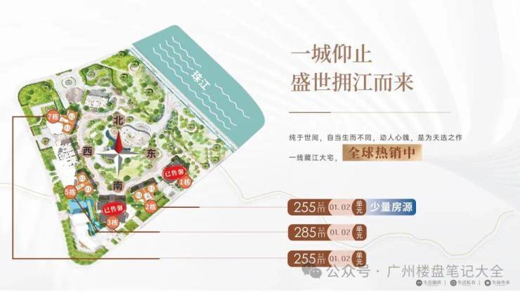 户型:建面约233-285㎡四至五房,约255㎡东南向一线阅江新品加推。极致3.4-3.6m层高,14-40层高层、超高层