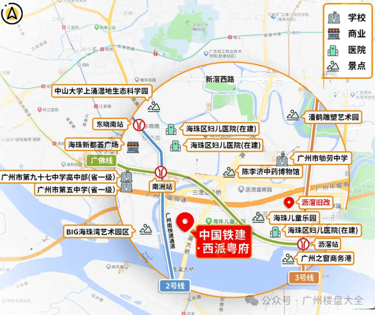 3、教育:项目周边直线距离约1.3km是南武小学(市一级),直线距离约 1.5km是广州市劬劳中学(市一级) ,直线距离约1.4km是广州市第九十七中学高中部(省一级) ,直线距离约 1.4km 是洛溪新城中学 (省一级)。