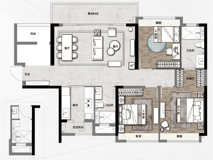 双阳台配置,南北通适,动静分区