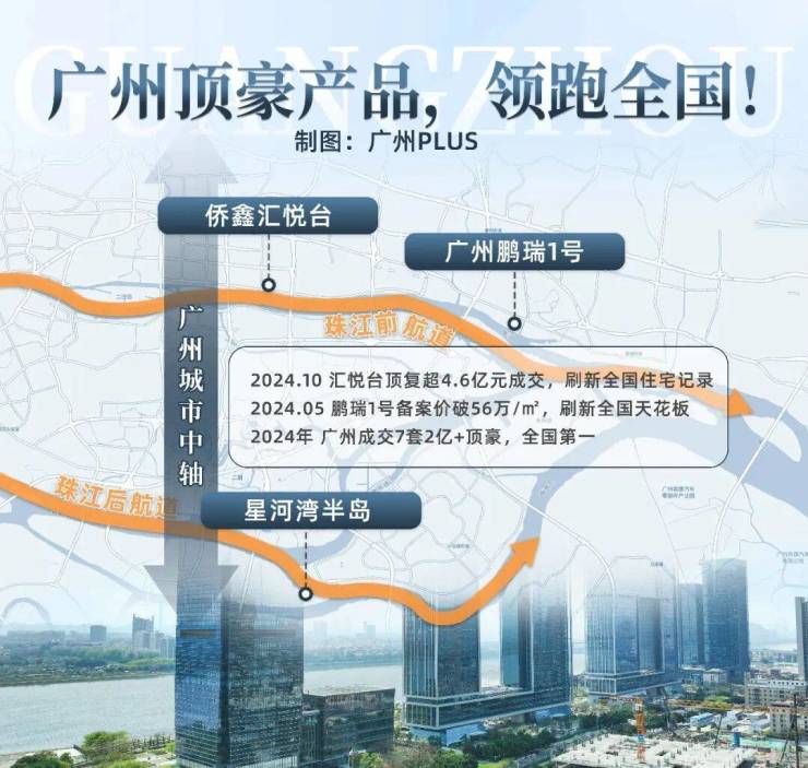 从珠金琶到珠江后航道,那些城市塔尖的顶豪,无一不是凭南向望江而贵。