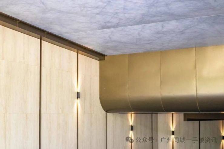 就拿楼栋大堂入口区域来说,就大量采用了福鼎黑、贝金米黄大理石、潘多拉透光奢石等等。