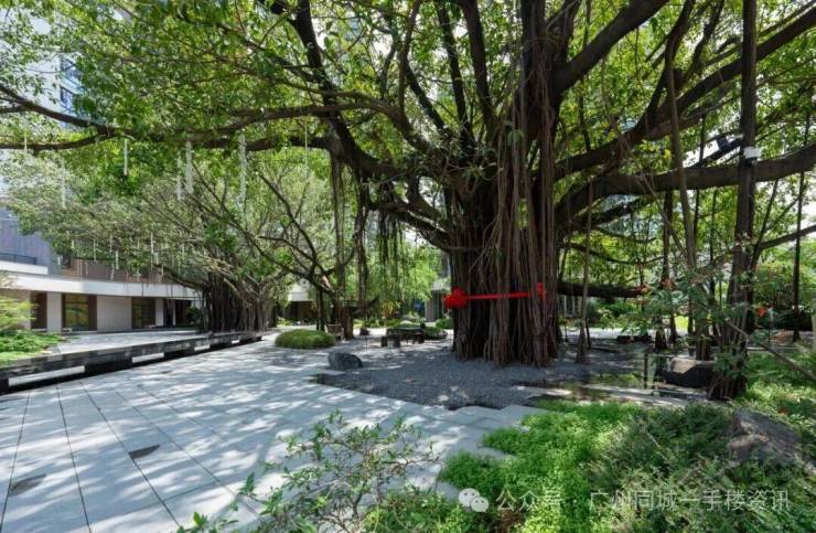 社区红线内有4颗百年榕树,设计师特意将其原址保护,并以此打造归家前厅,最大程度实现生活与自然的亲密共融。